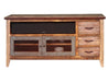 Antique Multicolor 62"TV Stand w/3 drawers and2 iron mesh doors