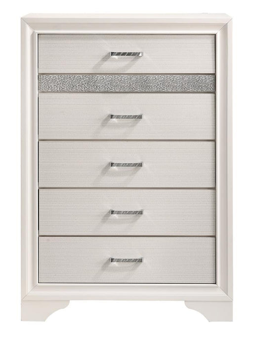 Coaster Z1 StandardMaximize your bedroom storage with this stylish 5-drawer chest, featuring a modern Italian design. The white finish and picture framed recessed pan...