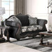 RONJA Loveseat, 72"L X 37"W X 44"H, 150lbs. This salon-inspired sofa from the Ronja Collection will add sophistication to your living room. This sofa is one-of-a-kind, with a curvy design, button tufting, and dapper damask fabric on the reversible box cushions. Each plush cushion is encased in black welting, and the rolled arms feature wooden accents, creating an antique refinement perfect for the focal point of your living room.