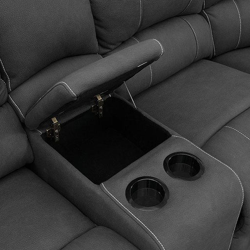 This optional center console with cupholders and ample storage is offered to match all three colors of this set.