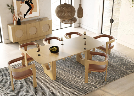 VIG FurnitureRectangular Dining Table Natural White Oak Veneer Finish Manufactured Wood + Solid Wood Frame Seats Up To 8 Trestle Base Care Instructions: Wipe cl...