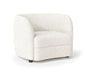 Compact fitted kidney-shaped single cushion, curved arms and backrest, and barely-there wooden legs contribute to this piece's tight fit and ultra comfort. Besides the intriguing shape, the other draw here is the visual impact it brings to any modern space. The boucle fabric features metallic undertones which when paired with a neutral color palette under certain lighting conditions, allow the texture to glitter and shine in the most undeniably chic way.