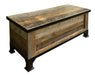 Featruring solid pine construction, Top trim features hand-wrought iron in a streamlined styling. Legs and base also feature authentic wrought iron for authentic rustic look and added value.
