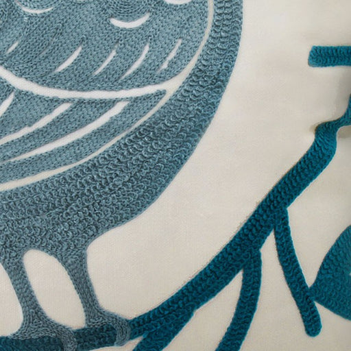 FOA WestThis accent pillow has a simple yet captivating design for any season: a bird perched on a branch in pale blue.