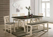 If a more updated look is what you desire, then look no further than this dining bench. The ivory finish feels welcoming, and with the soft fabric seat, it's decidedly country with a touch of contemporary flair.