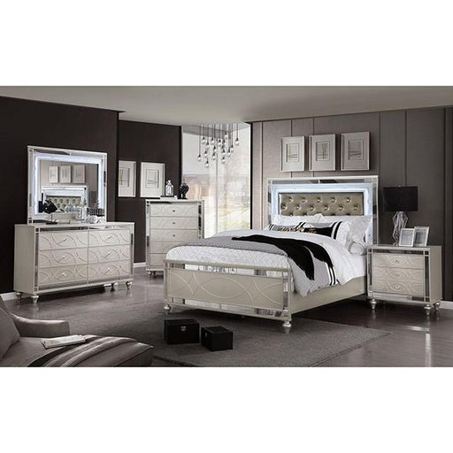 FOA WestMANAR Cal.King Bed, 90 1/4"L X 79"W X 62 1/4"H, 198lbs. The glamor is in the details of this bedroom set from the Manar Collection. The headboard i...