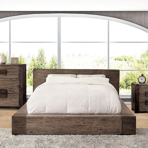 This transitional design features a natural wood grain appearance, lending a natural air to any bedroom decor.