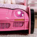 Twin Bed Height: 23.50" Width: 45.50" Length: 82.50" Set your child on the road to a dreamland of extravagance in this fashionable and luxurious Pretty Racer bed. The sturdy construction boasts a flashy finish and working lights - a dynamic pink-themed delight your child is sure to enjoy.