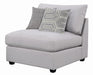 With a simple silhouette, this modern armless chair showcases contemporary design. Great for a neutral or colorful space, the light grey fabric upholstery complements a variety of decor schemes. The modular design allows for a customizable sofa or sectional, ideal for hosts and families. Clean and elongated, the lines on the seat and back cushions mirror each other for an updated feel. Sink into the plush cushioning on a family movie night or game night.