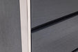 The Jolene Nightstand is the perfect modern example of design. The grey oak veneer of the two drawers is smooth and modern. Surrounding the front and back of this piece is a polished stainless-steel frame that contrasts the grey of the drawers. All drawers are self-closing creating a truly contemporary piece.