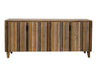 The Tiza Console effortlessly combines timeless elegance with a clean-lined design, presenting a simple yet sophisticated silhouette. Crafted from the finest grade pine, it offers exceptional quality and outstanding value. This console boasts a soft, multicolored hand-distressed surface with subtle yellow highlights. This unique finish adds depth and character to the piece, making it a standout feature in any room. With its practicality in mind, the Tiza Console is equipped with four doors that open to reveal ample storage space. Whether you're storing dishes, glasses, or media items, this console is designed to accommodate your needs while maintaining its elegant appearance.