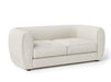 This compact living room ensemble is full of welcomed surprises. The tall arms and low back is an obvious homage to the tuxedo style, but the bulbous shape and smoother lines is a unique twist taking inspiration from the modern era. Underneath the seat cushions are high density foam, making firmer seats than one would expect for the shape that it is in. Finally, soft boucle fabric wraps around the whole piece highlighting a certain air of elegance and quiet class.
